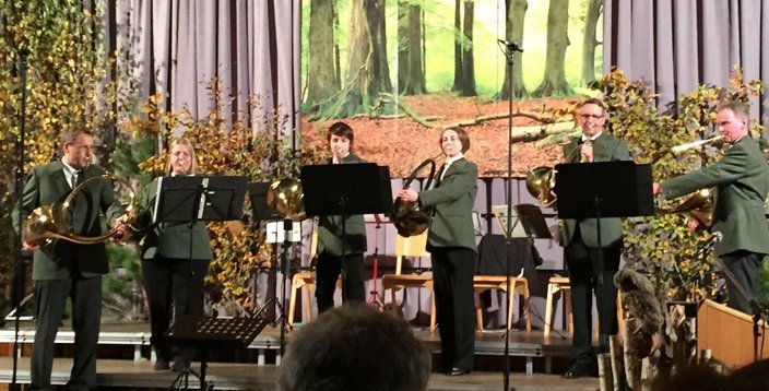 Neben der gemischten Bläsergruppe mit Fürst-Pless- und Parforcehörnern hat sich bei den Jagdhornbläsern Murgtal seit gut einem Jahr eine Es-Horngruppe formiert, die in kurzer Zeit enorme Fortschritte erzielen konnte und Ende 2015 ihren ersten Solo-Auftritt vor einem größeren Publikum hatte. In Neuburg am Rhein /Pfalz gestalteten sie zusammen mit dem dort ansässigen Männergesangverein und dem Waldhornquartett ihrer Dirigentin Frau Barbara Lindner einen musikalischen Themenabend rund um die Jagd. Die mit viel Dynamik dargebotenen Stücke fanden bei den Zuschauern großen Anklang und wurden mit entsprechendem Applaus belohnt.
