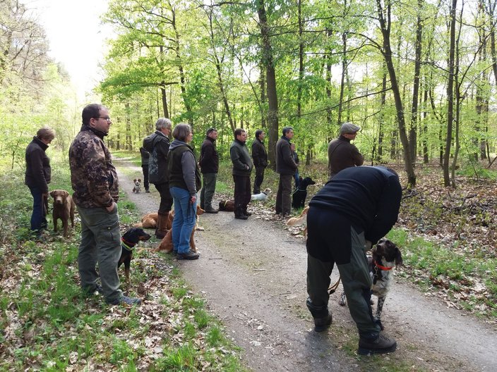 Am Samstagmorgen trafen sich die Teilnehmer des Schweißseminars in einem Revier in der Nähe von Baden-Baden. Es hatte sich eine bunt gemischte Gruppe zum Wochenendkurs angemeldet und so begrüßten sich bei einer Tasse Kaffee Retriever-, Teckel-, Kleiner Münsterländer-, BGS-, Terrier-, Bracken- und Labradorführer, bevor man es sich in der Jagdhütte zum theoretischen Teil begab. An beiden Tagen stand bis zur Mittagspause Theorie auf dem Plan, bevor sich die Gespanne am Nachmittag ins Revier begaben, um das am Morgen Erlernte in die Praxis umzusetzen. Hundeausbilder Uwe Heiß erläuterte anschaulich und praxisnah die Grundlagen für die Einarbeitung des Hundes auf der Schweißfährte. Hier wurde schnell klar: Ohne Gehorsam keine vernünftige Schweißarbeit! Aber nicht ausschließlich die Arbeit auf der Schweißfährte wurde erörtert, auch Themen wie Gehorsam, Zwänge und Motivation wurden im Abschnitt über das Lernverhalten des Hundes eingehend diskutiert. Nach dem Seminar waren sich alle einig: Es hat sich auf jeden Fall gelohnt auch wenn das Seminar natürlich in der Kürze der Zeit nur einen Grundstock an Wissen vermitteln kann, auf dem man aufbauen kann, denn „Schweißarbeit ist schließlich Fleißarbeit“! Ein ganz herzliches Dankeschön an Joachim Seeger, der uns für das ganze Wochenende sowohl seine Jagdhütte als auch sein Revier für die Praxis zur Verfügung stellte und für unser leibliches Wohl sorgte!
